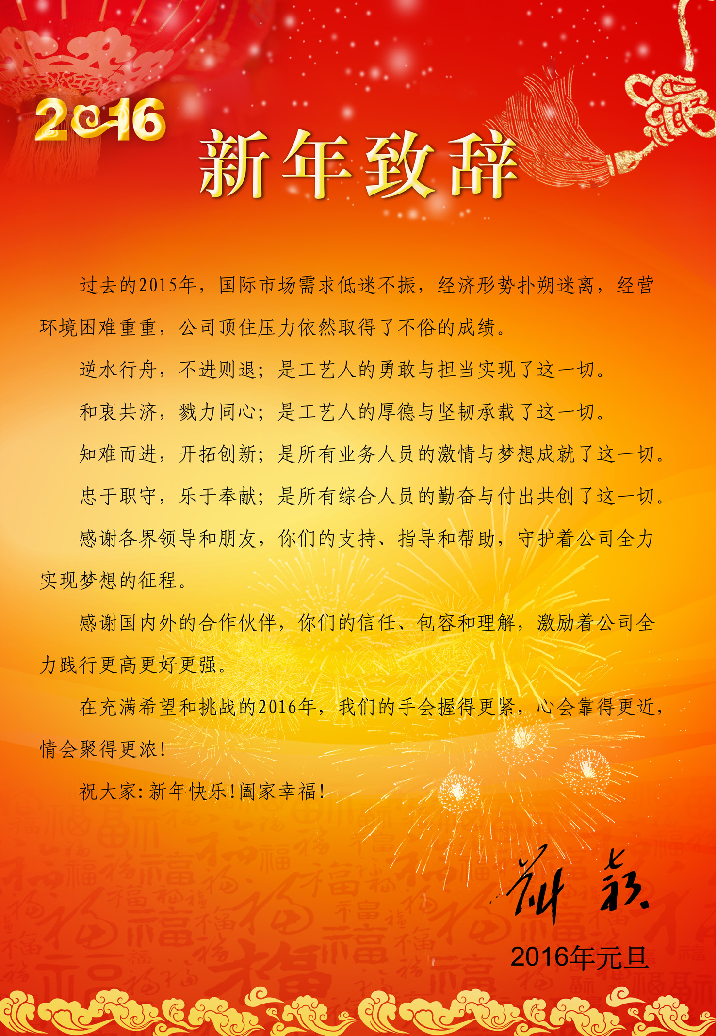 您的位置:首頁 > 新聞中心 > 新聞中心 > 2016年新年致辭
